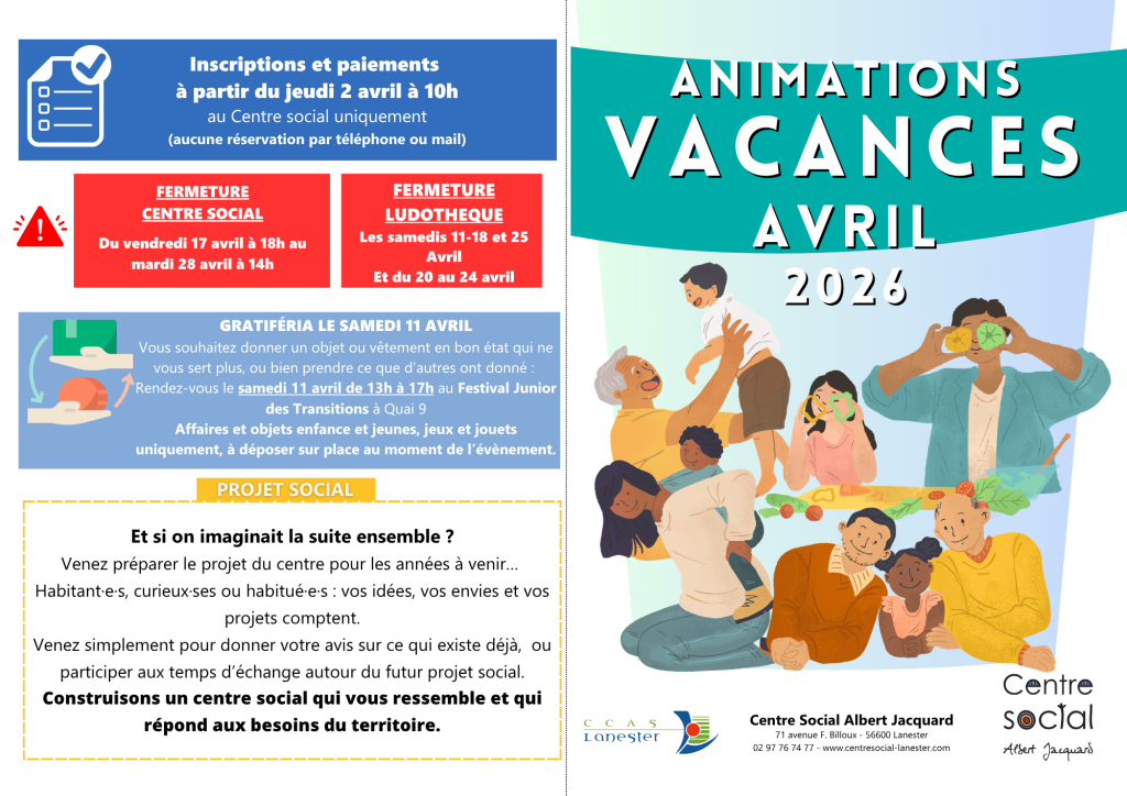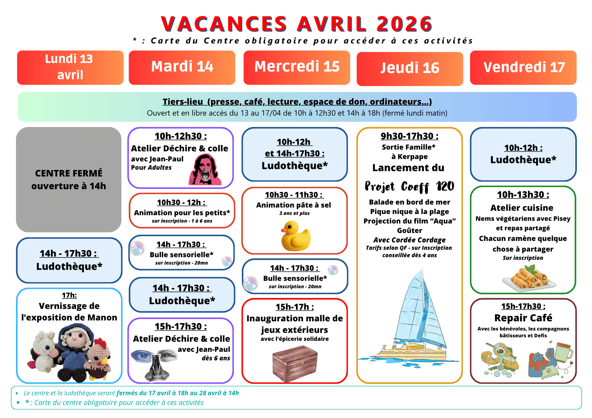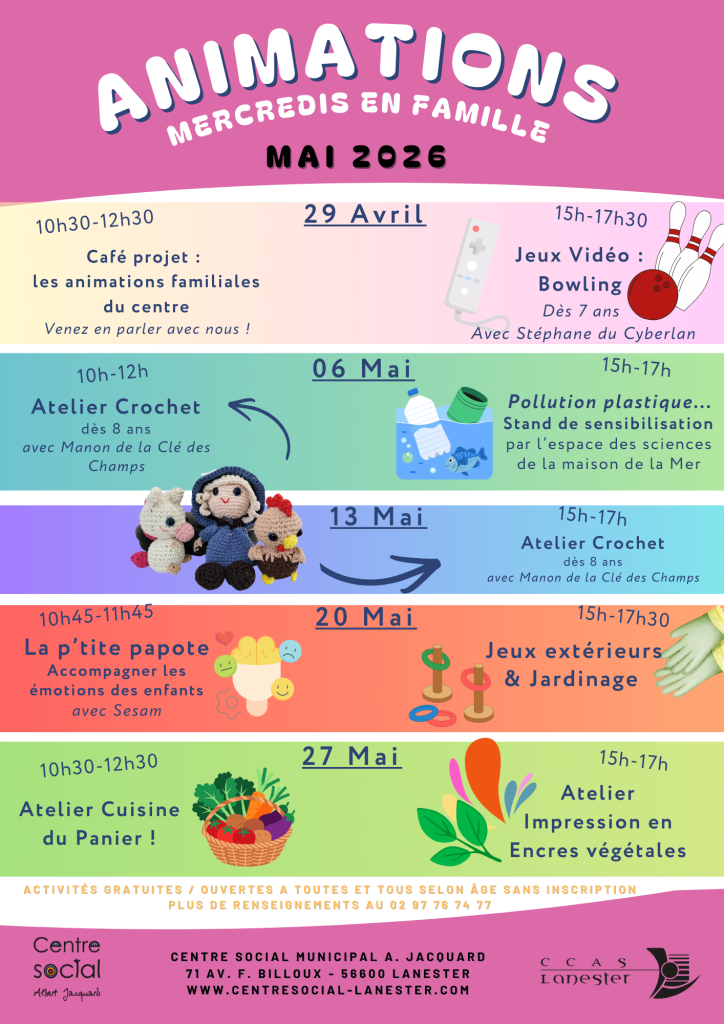 📅 Nouvelles dates à consulter au centre social (un mercredi par mois)